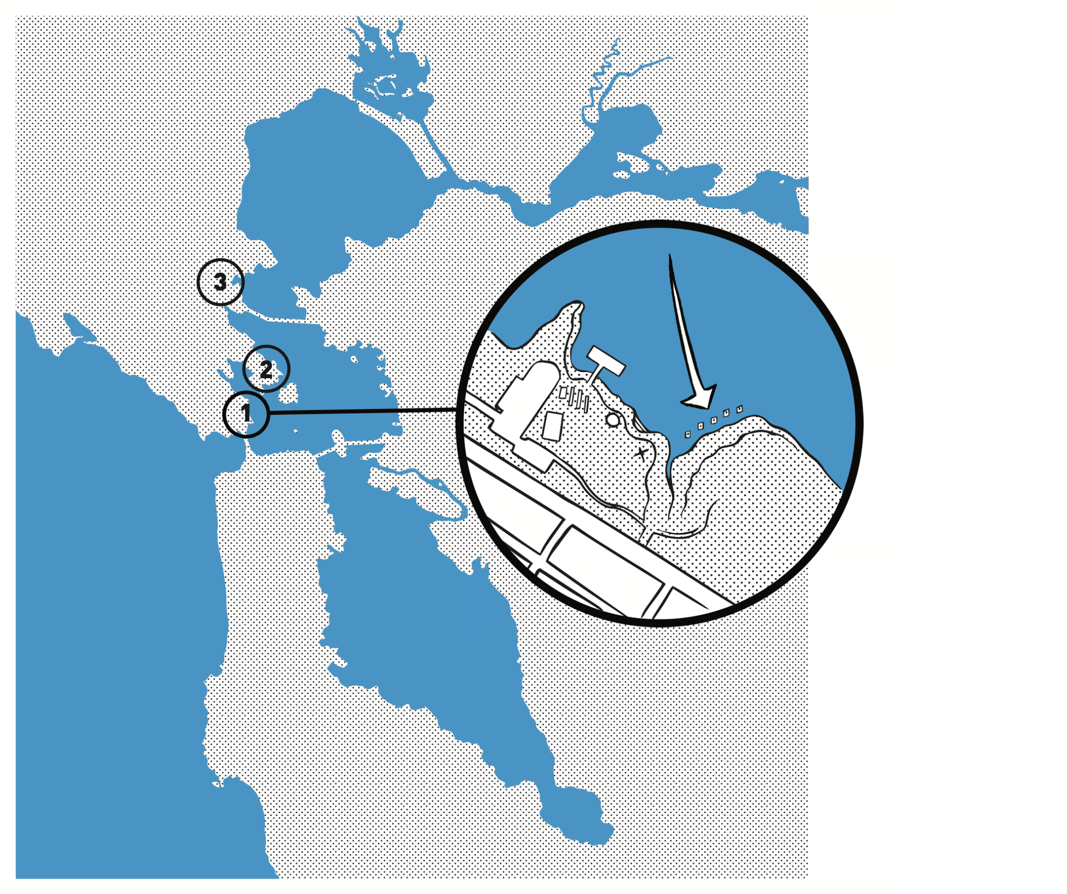 On a low tide at three locations in San Francisco Bay, you can see a pilot experiment to test a new oyster reef design for Living Shorelines in San Francisco Bay.